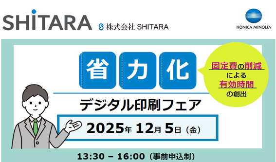 ㈱SHITARAとコニカミノルタジャパン㈱は12月5日㈮13時30分から、コニカミノルタジャパンの新ショールームCEC浜松町にて、「省力化、デジタル印刷フェア」を開催する。